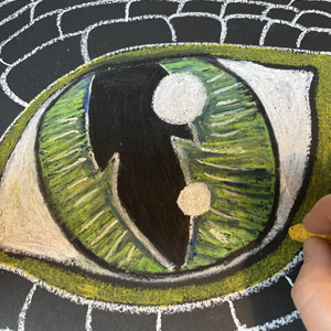 Les enfants dessineront un superbe œil de dragon multicolore au pastel (gras ou sec), sur un fond noir, de manière réaliste.